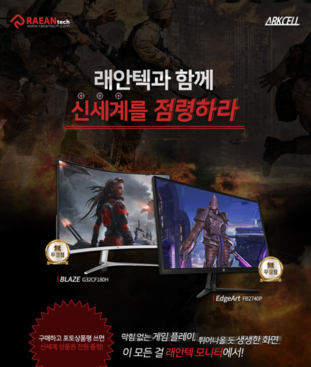 래안텍이 아크셀(Arkcell) 게이밍 모니터 시리즈 구매자 대상으로 포토상품평 프로모션을 진행한다.