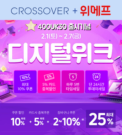 크로스오버는 인기 게이밍, 포터블, 고해상도 모니터 19종을 대상으로 위메프 디지털위크 특가 할인전을 진행한다.