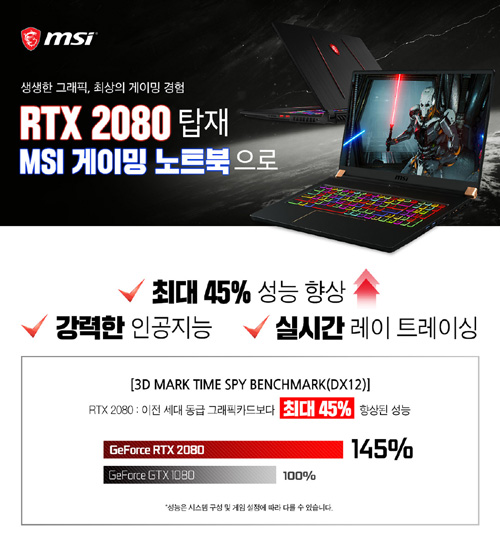 엠에스아이코리아는 11번가에서 RTX 2080 탑재 게이밍 노트북 기획전을 진행한다.