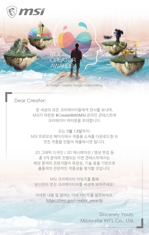 엠에스아이코리아는 전 세계 크리에이터들을 대상으로 MSI 크리에이터 어워즈' 콘테스트를 진행한다.