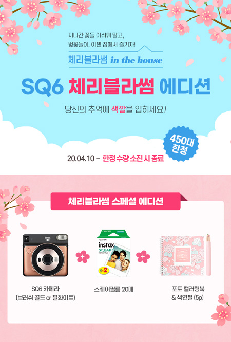 한국후지필름이 봄을 맞이해 실내에서 즐기는 벚꽃놀이 아이템으로 구성된 ‘인스탁스 스퀘어 SQ6 체리블라썸 에디션’을 한정 판매한다.