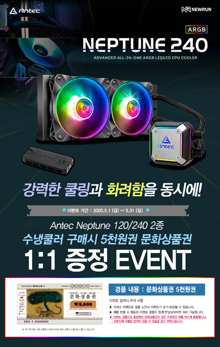 뉴런글로벌에서 일체형 수냉쿨러 Neptune 시리즈 구매자 대상으로 5월 한달 간 경품 이벤트를 진행한다.