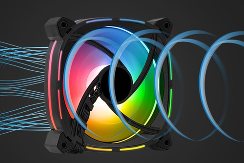 곡선 형태의 팬 블레이드는 공기 흐름을 효과적으로 유도하여 공기의 압력을 높이고 저항을 줄여 뛰어난 냉각 성능을 자랑하며, 반투명 팬 블레이드는 RGB 효과를 더욱 높여준다.