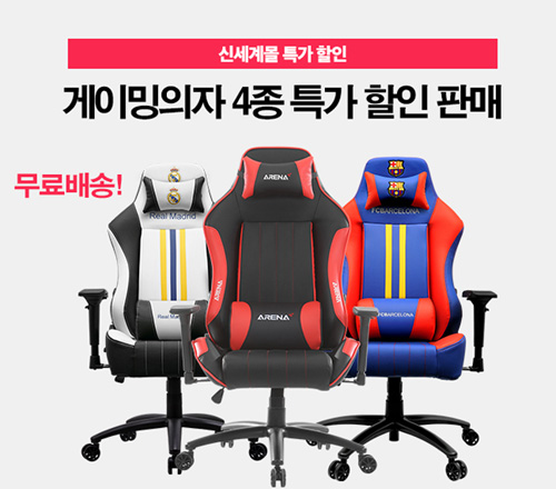 신세계몰에서는 게이밍체어 아레나 제로 레드와 아레나 제로 골드, 레알마드리드 의자, 바르셀로나 의자, 하버드 의자를 할인된 가격에 판매한다.