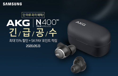 유니씨앤씨는 노이즈캔슬링 무선 이어폰 AKG N400 모델을 대상으로 최대 15% 추가할인 및 SK PAY 포인트가 증정되는 긴급공수 이벤트를 2020년 5월 13일 진행한다.