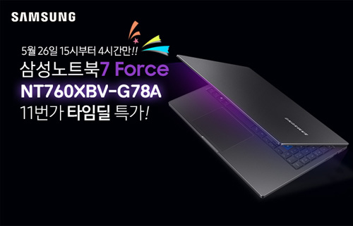 유니씨앤씨는 삼성노트북7 Force NT760XBV-G78A 모델을 대상으로 최대 19% 추가 할인 및 무료 업그레이드 혜택이 제공되는 ‘타임딜’ 프로모션을 2020년 5월 26일 15시부터 4시간동안 진행한다.