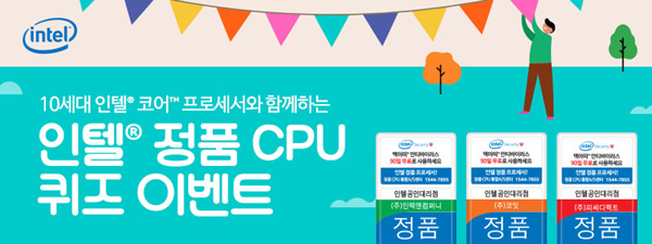 인텔 공인대리점 3사가 최대 10코어 CPU ‘10세대 인텔 코어 프로세서’의 출시를 기념하여 인텔 정품 CPU 퀴즈 프로모션을 실시한다. 오는 6월 26일까지 실시되는 퀴즈 프로모션에서 정답을 맞힌 참여자를 대상으로, 다양한 선물이 제공된다.