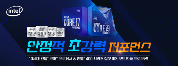 안정적 초강력 퍼포먼스 이벤트는 10세대 인텔 정품 CPU와 인텔 400 시리즈 칩셋 메인보드를 구매하고 제품 구매 내역이 포함된 영수증을 응모하면 경품 이벤트에 참여가 가능하다.