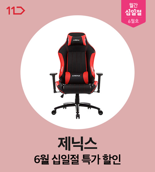제닉스에서 다양한 게이밍의자 상품을 온라인 오픈마켓 11번가에서 6월 십일절샵 특가 할인을 실시한다.