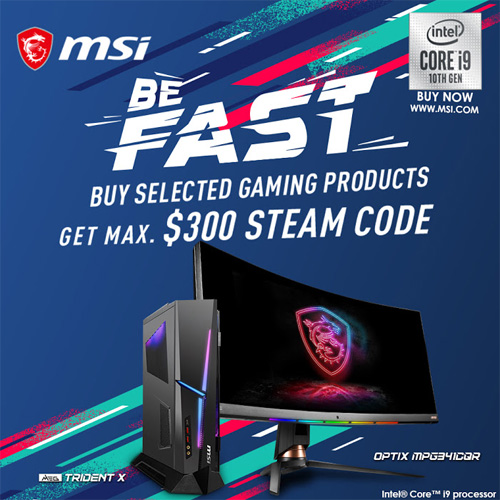 엠에스아이코리아는 MSI 게이밍PC와 모니터 구매자를 대상으로 최대 300달러 스팀 지갑 상품권을 제공하는 Be Fast 프로모션을 진행한다.