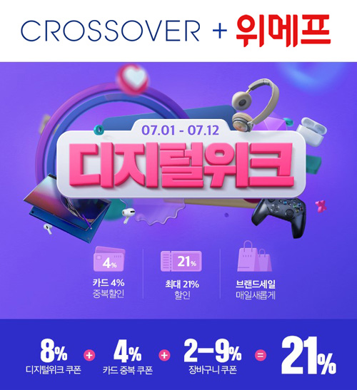 크로스오버는 인기 게이밍, 21:9 및 대화면 4K 모니터 4종을 대상으로 위메프 디지털위크 특가 할인전을 진행한다.