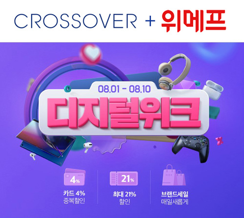 크로스오버는 인기 게이밍, 21:9 및 대화면 4K 모니터 10종을 대상으로 위메프 디지털위크 특가 할인전을 진행한다고 밝혔다.