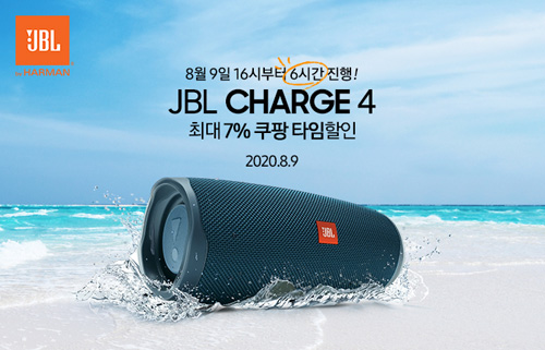 유니씨앤씨는 블루투스 스피커 JBL Charge4 모델을 대상으로 최대 7% 즉시 할인 혜택이 제공되는 ‘타임 할인’ 이벤트를 2020년 8월 9일 16시부터 6시간 진행한다.