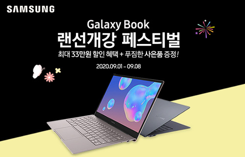 유니씨앤씨는 삼성 갤럭시북 S와 삼성 갤럭시북 이온, 플렉스 모델 등을 대상으로 최대 33만원 할인 혜택 및 푸짐한 사은품이 제공되는 ‘갤럭시북 랜선개강 페스티벌’ 이벤트를 2020년 9월 1일부터 9월 8일까지 네이버 스마트스토어를 통하여 진행한다.