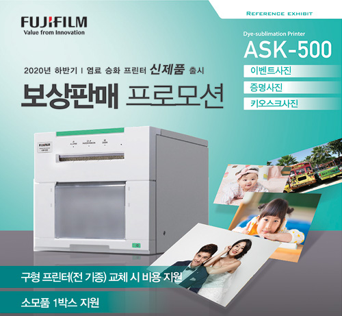 한국후지필름이 염료 승화 프린터 ASK-500 출시를 기념하여, 구형 프린터 보상 판매를 실시한다.