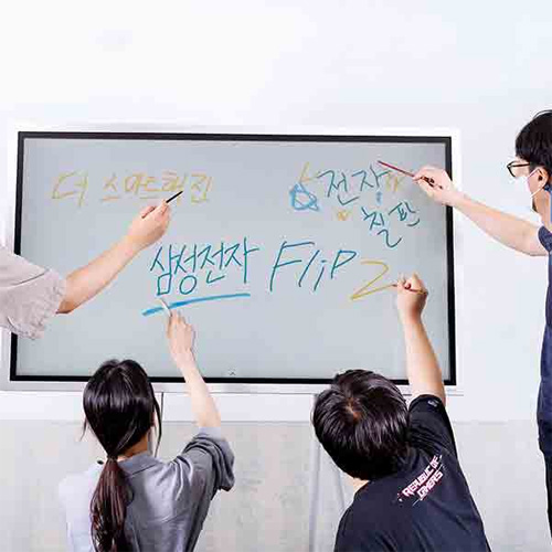 스마트보드라 불리는 `전자칠판 플립2`는 대형 터치스크린을 통해 분필이 아닌 손가락이나 터치펜으로 실제 칠판처럼 글씨를 쓰거나 그림을 그릴 수 있다. 문서나 이미지, 동영상 등을 불러오고 그 위에 필기를 하거나 도표 등을 그릴 수 있어 기업 회의나 프레젠테이션, 교육용으로 유용하게 사용되고 있다.