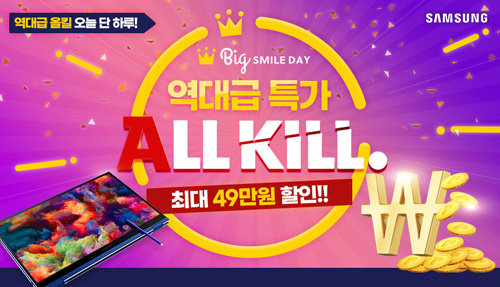 옥션에서 진행되는 올킬 특가 행사는 갤럭시북 플렉스 구매 시 20% 할인 가능한 선택 쿠폰(최대 40만원)과 최대 5만원 할인 가능한 인텔 할인쿠폰( 5만원) 혜택이 적용되며, 추가로 스마일카드 결제 시 2% 적립 (3만원), 스마일클럽 회원 추가 적립금까지 적용된 금액으로 갤럭시북 플렉스(NT950QCG-X58A)를 보다 저렴한 금액으로 구매해 볼 수 있다고 한다.