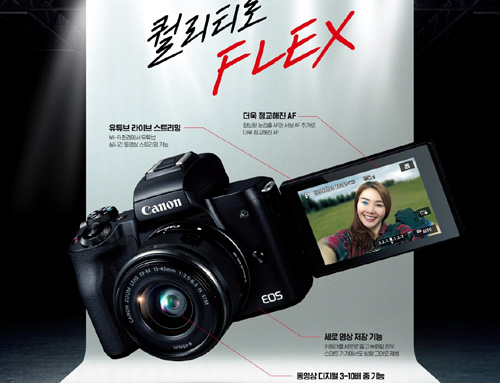 캐논 EOS M 시리즈는 고성능과 휴대성, 편의성을 갖춘 미러리스 라인업이다. 특히 EOS M50 모델은 출시 이후부터 현재까지 큰 인기를 얻고 있는 모델로, 콤팩트한 디자인에 EOS M 시리즈 중 최초로 4K 영상 촬영을 지원해 실제로 수많은 유튜버, 브이로거 등 1인 크리에이터들이 영상 촬영에 사용하고 있는 제품이기도 하다.