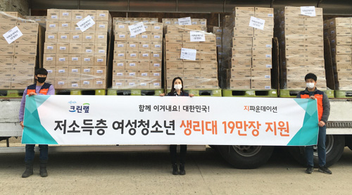 크린랲이 국제개발협력 NGO 단체인 지파운데이션과 함께 코로나19 장기화로 생계가 어려운 저소득층 아동 및 청소년 지원에 나섰다. 크린랲은 22일 MB필터 마스크 48만 장(1억원 상당)과 유기농 생리대 19만 개(3천만원 상당), 현금 3천만원 등 총 1억 6천만원 상당의 기부금품을 지파운데이션에 위탁, 기부했다.