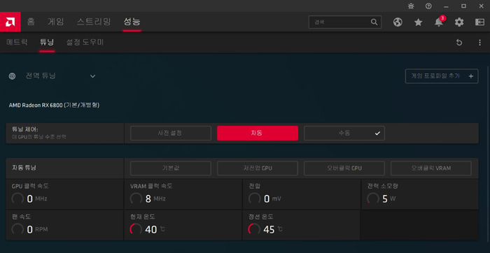 마지막으로 언급할 레이지 모드는 쉽게 말해 오버클럭 기능이라 생각하면 된다. 원클릭 프리셋을 통해 그래픽카드가 지원하는 최대 성능까지 높이며 전력 절감을 위해 전력 수준을 조정한다. 라데온 RX 6000 시리즈의 높은 게이밍 퍼포먼스 구현을 위해 GPU의 추가적인 여유공간들을 사용자가 활용할 수 있도록 하는 것이 레이지 모드의 핵심이라 할 수 있다.