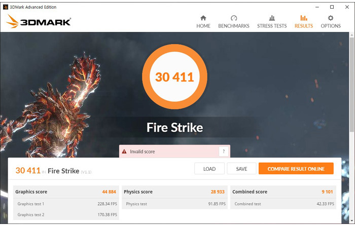 10세대 인텔코어 프로세서 i9-10850K와 RTX 3090, 64GB DDR4 메모리를 사용한 하이엔드 게이밍 데스크탑의 3DMARK 스코어를 확인하고 있는 모습으로 44884 의 엄청난 스코어를 보여주었다. 특히 프로세서의 성능을 예측할 수 있는 피직스 스코어 에서도 i7 프로세서 (i7-10700KF : 약 24,900) 와 분명한 성능차를 보여주고 있다.