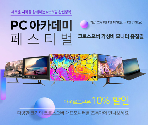 크로스오버는 인기 포터블, 고해상도 및 게이밍, 대화면 4K 모니터 22종을 대상으로 11번가 2021년 1월 2차 PC 아카데미 기획전을 진행한다.
