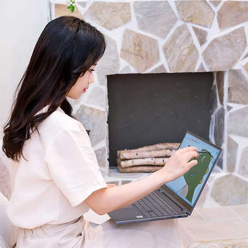 `갤럭시북 플렉스 알파(Galaxy Book Flex α)` NT750QCR-A58A는 풀 알루미늄 메탈 보디의 다이아몬드 커팅 공법을 적용해 감각적이면서 세련된 디자인을 완성했다. 39.6cm(15.6형) QLED 디스플레이를 탑재하여 컬러 볼륨 100%에 실제와 가까운 색상 표현이 가능하며, 최대 600니트(nit) 밝기의 아웃도어 모드(Outdoor mode)를 지원해 강한 햇빛 아래서도 선명한 화면을 즐길 수 있다.