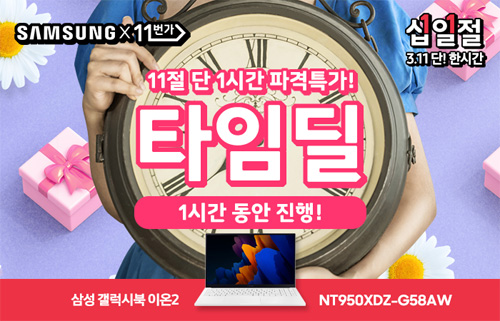 유니씨앤씨는 월간 십일절을 맞이하여 15.6인치 대화면 QLED 디스플레이와 지포스 외장그래픽이 탑재된 삼성 갤럭시북 이온2 NT950XDZ-G58AW 모델을 대상으로 최대 29만원 추가 할인과 함께 푸짐한 혜택이 주어지는 ‘타임딜’ 프로모션을 2021년 3월 11일 11시부터 단 1시간 동안 11번가를 통하여 진행한다.