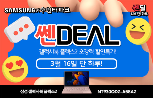 유니씨앤씨는 인텔 11세대 타이거레이크 CPU가 탑재된 삼성 갤럭시북 플렉스2 NT930QDZ-A58AZ 모델을 대상으로 최대 28만원의 추가 할인과 함께 푸짐한 사은품이 증정되는 ‘쎈딜’ 프로모션을 2021년 3월 16일 단 하루 진행한다.
