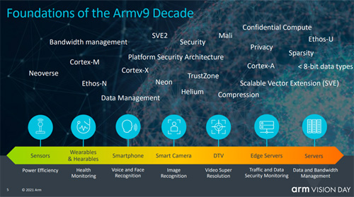 Arm이 온라인 기자간담회 ‘Arm 비전 데이(Arm Vision Day)’를 개최하고 새로운 Armv9 아키텍처를 발표한다. 이는 향상된 보안, 인공지능(AI), 그리고 유비쿼터스 전용 프로세싱에 대한 전세계적인 요구사항에 대응하기 위해 설계됐다. Armv9은 10년만에 출시된 새로운 Arm 아키텍처이다.