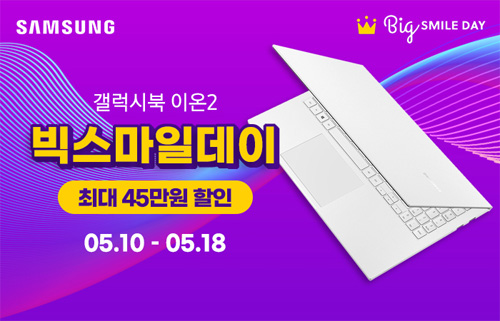 유니씨앤씨는 5월 가정의 달을 맞아 2021년 삼성 갤럭시북 인기모델을 대상으로 최대 45만원 중복 할인 및 푸짐한 혜택이 증정되는 최고의 쇼핑 축제 ‘빅스마일데이’ 이벤트를 2020년 5월 10일부터 5월 18일까지 G마켓, 옥션을 통하여 진행한다.