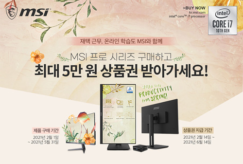 MSI는 ‘MSI 프로 MP242 아이세이버’ 출시와 더불어 MSI 프로 시리즈 모니터와 미니 PC, 일체형 PC를 구매하고 이벤트에 신청한 고객 전원에게 최대 5만 원의 해피머니 상품권을 증정하며, 신청자 중 추첨을 통해 전동 조절 책상을 추가 경품으로 증정한다.