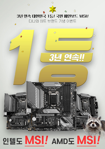 선정 제품은 MSI MEG B550 유니파이, MSI MPG B550 게이밍 엣지 WIFI, MSI MAG B550M 박격포 WIFI 이다. MSI는 2019년부터 ‘MSI MAG B550M 박격포’와 ‘MSI MPG B550 게이밍 엣지 WIFI’ 등 다양한 제품이 라이젠 국민 메인보드로 사랑을 받으며 2021년 상반기에도 히트브랜드에 선정되었다.