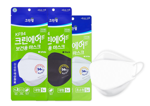 이번에 새롭게 출시한 제품은 식품의약품안전처로부터 의약외품으로 허가 받은 KF94 보건용 마스크다. 성인이 사용하는 대형 마스크(흰색, 검은색) 2종과 유아 및 어린이용으로 사용 가능한 초소형 마스크 흰색 1종으로, 1박스당 50개입 형태로 구성됐다.
