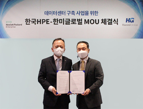 한미글로벌이 한국휴렛팩커드 엔터프라이즈(HPE, 대표 김영채)와 외국 기업들의 국내 데이터센터 설립을 유치하기 위한 업무협약(MOU)을 체결했다.