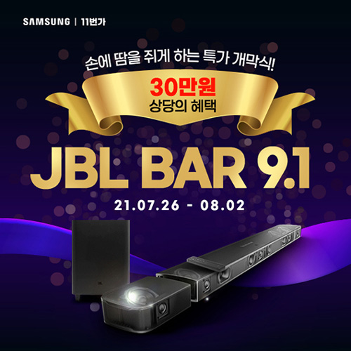 유니씨앤씨는 JBL BAR 9.1 블루투스 사운드바를 대상으로 최대 25% 할인 혜택이 제공되는 ‘특가개막식’ 프로모션을 11번가를 통해 2021년 7월 26일부터 8월 2일까지 진행한다.
