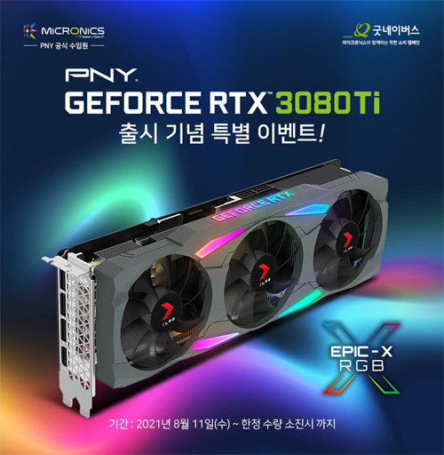 마이크로닉스는 PNY 지포스(GeForce) RTX 30 시리즈 그래픽카드 라인업 최상위 제품군 중 하나인 PNY 지포스 RTX 3080 Ti와 PNY 지포스 RTX 3080 LHR을 출시한다.