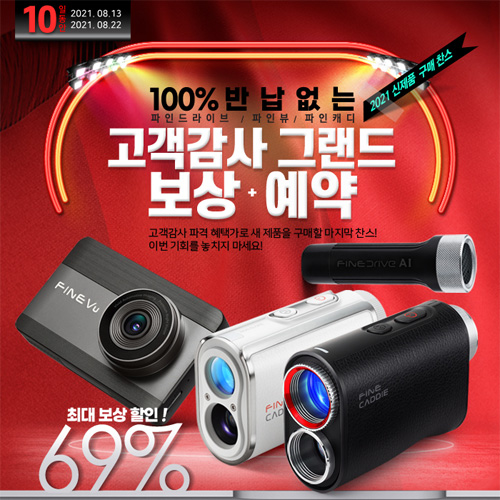 8월 13일부터 22일까지진행되는 이번 보상판매 이벤트는 파인디지털의 다양한 스테디셀러 제품은 물론 신제품을 소비자들에게 합리적인가격으로 제공하기 위해 기획됐다. 기기 반납 조건 없이 출시예정인 최신 골프거리측정기를 예약 구매할 수 있으며, 그 외인기 제품들을 최대 69% 할인된 가격에 구매 가능하다. ▲블랙박스 ▲내비게이션 ▲골프거리측정기 ▲홈 CCTV ▲블랙박스 보조배터리 ▲로봇청소기 등 다양한 제품군이보상판매 라인업이 포함되어 소비자 선택의 폭을 넓혔다.