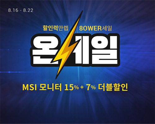 2021년 8월 16일부터 8월 22일까지 진행되는 이번 기획전에서는 15%의 선택 할인 쿠폰과 함께 7% 카드 할인의 더블 할인을 진행한다. 특히, 27형 시력 보호 기능이 탑재된 게이밍 모니터 ‘MSI 옵틱스 G271 아이세이버’와 27형 WQHD(2560*1440) 고해상도 모니터 ‘MSI 옵틱스 G27CQ4’, 27형 베스트셀링 모니터 ‘MSI 옵틱스 MAG272C’를 할인 쿠폰을 적용하여 최종 구매가 20만 원대에 구매할 수 있다.