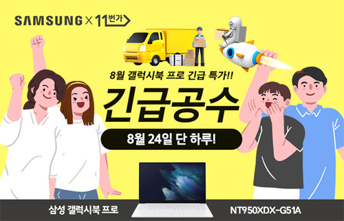 유니씨앤씨는 지포스 외장그래픽이 탑재된 삼성 갤럭시북 프로 NT950XDX-G51A 모델을 대상으로 최대 34만원 추가 할인과 함께 푸짐한 사은품이 주어지는 ‘긴급공수’ 프로모션을 2021년 8월 24일 단 하루 동안 11번가를 통하여 단독 진행한다.