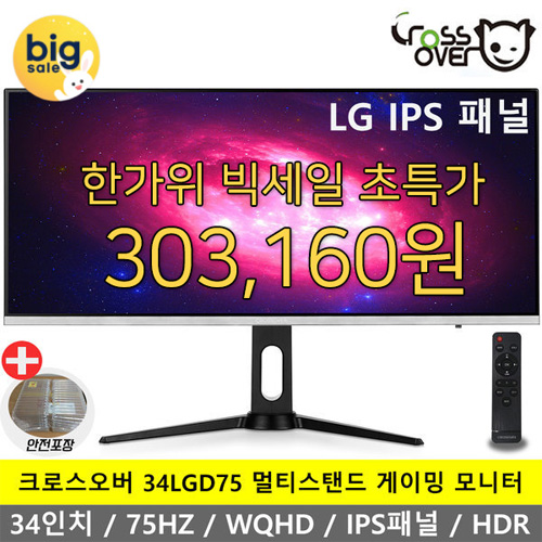 크로스오버는 크로스오버 대표 모니터인 34LGD75 IPS 평면 75HDR 멀티스탠드 PREMIUM을 대상으로 빅세일 초특가전을 진행한다.