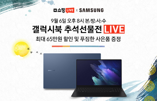 유니씨앤씨는 AMOLED 디스플레이와 초슬림 초경량 디자인으로 뛰어난 휴대성을 자랑하는 삼성 갤럭시북 프로 / 프로360 인기모델을 대상으로 네이버페이 최대 65만원 할인 혜택 및 최대 12개월 무이자 할부와 MS 윈도우10 홈 정품, 한컴 삼성 오피스팩 등의 푸짐한 사은품이 증정되는 ‘삼성 갤럭시북 추석특집 선물대전’ 라이브 방송을 2021년 9월 6일 20시부터 60분 동안 네이버 스마트스토어를 통하여 진행한다.
