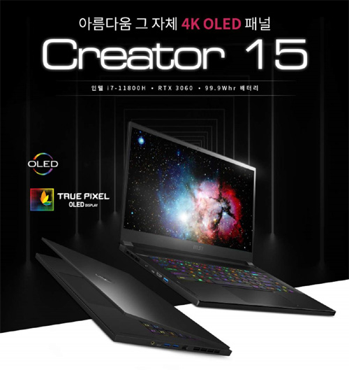 MSI는 OLED 디스플레이를 탑재한 전문가용 노트북 크리에이터 15 A11UE 4K OLED를 출시했다.
