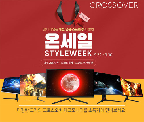 크로스오버는 게이밍 모니터 4종을 대상으로 롯데온 9월온세일 특가 할인전을 진행한다.