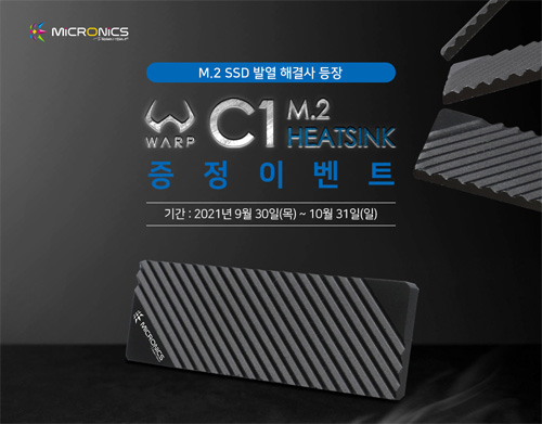 마이크로닉스는 M.2 2280 규격 SSD의 발열을 해소하는데 도움을 주는 방열판 WARP C1 M.2 HEATSINK의 출시 이벤트를 10월 31일까지 진행한다.