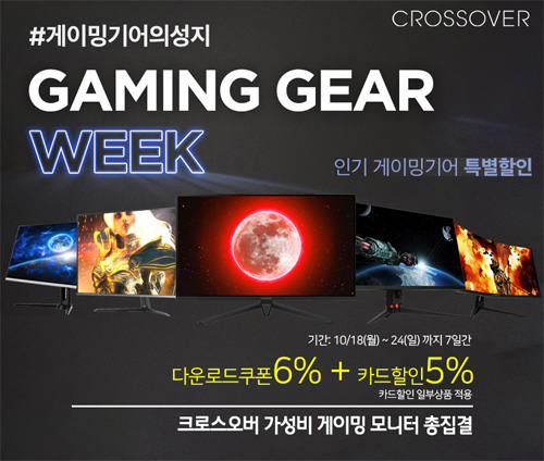 크로스오버는 자사의인기 게이밍, 고해상도 모니터들을 대상으로 11번가 게이밍기어 위크 특가전을 펼친다.
