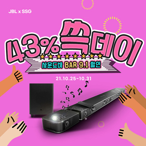 유니씨앤씨는 JBL BAR 9.1 사운드바를 대상으로 정가 대비 43% 할인 혜택이 제공되는 ‘쓱데이’ 프로모션을 SSG닷컴을 통해 2021년 10월 25일부터 31일까지 일주일 간 진행한다.