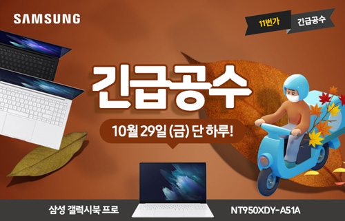 유니씨앤씨는 AMOLED 디스플레이 탑재와 초슬림 초경량 디자인으로 뛰어난 휴대성을 자랑하는 삼성 갤럭시북 프로 NT950XDY-A51A 모델을 대상으로 최대 20만원 추가 할인과 함께 푸짐한 사은품이 주어지는 ‘긴급공수’ 프로모션을 2021년 10월 29일 단 하루 동안 11번가를 통하여 단독 진행한다.