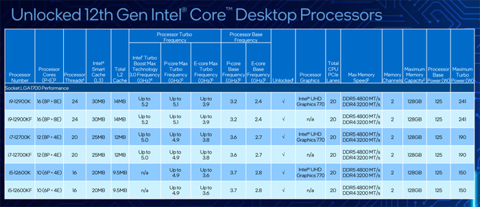이번에 출시한 6개의 언락 데스크톱 프로세서는 인텔이 구축한 CPU 코어 중 가장 성능이 뛰어난 퍼포먼스 코어(Performance-cores)와 확장 가능한 멀티 스레드 워크로드용으로 설계된 에피션트 코어(Efficient-cores)를 결합한 인텔의 고성능 하이브리드 아키텍처를 기반으로 한 최초의 프로세서다.