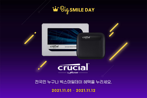 대원씨티에스는 이베이코리아의 연중 최대 쇼핑 축제 ‘빅스마일데이’를 맞아 마이크론 크루셜(Micron Crucial) 특가 이벤트를 개최한다.